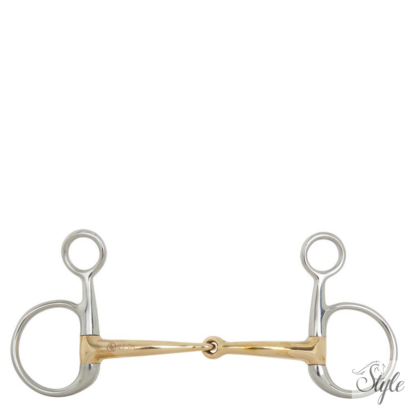 Ez a kiváló minőségű, egyízületes, függőpofa (más néven Baucher), felfelé nyúló gyűrűs karokkal, amelyek nyomást gyakorolnak, tömör Cupriganból készült, rozsdamentes acél gyűrűkkel. A Cuprigan egy ötvözet, amely 89% rézből, 7% alumíniumból, 3% vasból és 1% cinkből áll. Az anyag oxidációs folyamata kellemes illatot és ízt biztosít. A zabla anatómiai kialakítása követi a ló szájának formáját, ami lehetővé teszi a gyengéd és egyenletes nyomáseloszlást. A kialakítás a Cuprigan egyedi tulajdonságaival kombinálva elősegíti a rágási folyamatot és a nyáltermelést, ami kellemes kapcsolatot biztosít az érzékeny ló szájával. A gyűrűs karok enyhén kifelé fordulnak, ami optimális szabadságot biztosít a ló fejének. A szájrész vastagsága 12 mm, az arcrész hossza 110 mm.