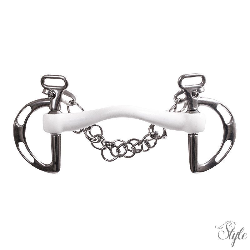 Az ívelt, nyelvkímélő szájrész csökkenti a nyelvre nehezedő nyomást, miközben egyenletes érzetet biztosít a ló szájában. A kimblewick kialakítás mérsékelt emelő- és fékezőhatást ad, a 20 mm vastag, fémmaggal megerősített szájrész pedig stabilitást és biztonságot nyújt a mindennapi edzések és a tereplovaglás során.