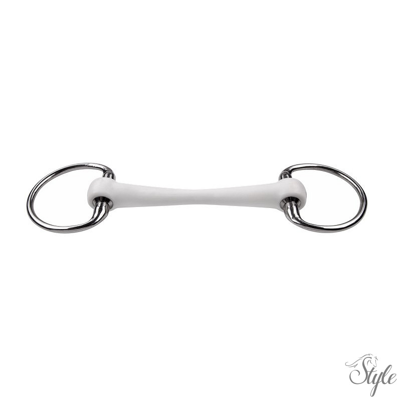 Az oliv (D-karika nélküli, fix karikás) kialakítás stabil fekvést biztosít a szájban, megakadályozza a csípődést, és egyenletes nyomáselosztást tesz lehetővé. A 20 mm vastagságú szájrész különösen alkalmas olyan lovak számára, amelyek jobban elfogadják a vastagabb, puhább zablát, illetve extra komfortot igényelnek.