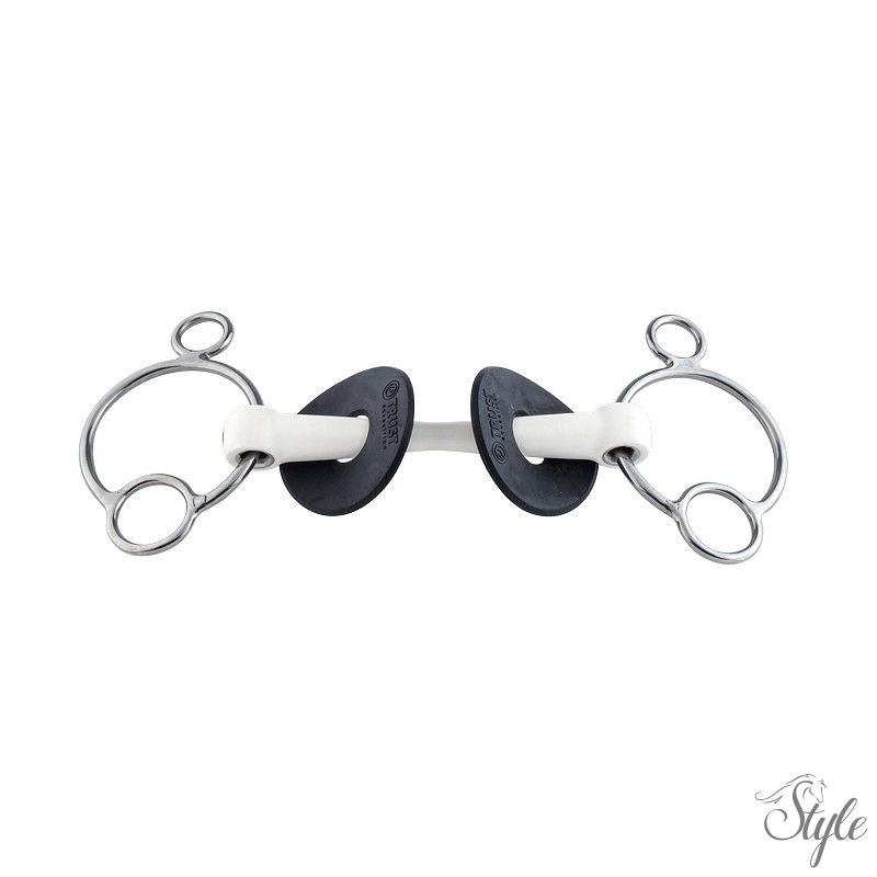 A 2,5 karikás kialakítás lehetőséget ad a hatás erősségének szabályozására a szár pozíciójától függően. Ez a konstrukció enyhe emelő és tarkóra ható nyomást is biztosít, így különösen hasznos lehet erősebb vagy tapasztaltabb lovak esetében, illetve ugró- és mindennapi edzések során. A 20 mm vastag, fémmaggal megerősített szájrész stabilan fekszik a szájban, miközben megőrzi rugalmasságát és kényelmét.