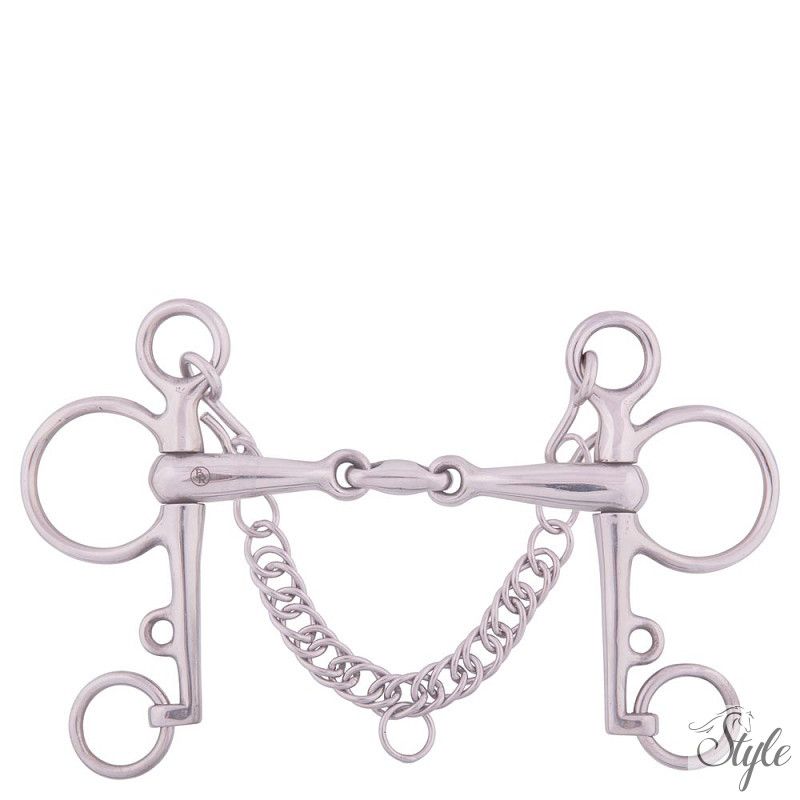 A szájrész vastagsága 18 mm. Duplántört nagy karú láncos zabla
