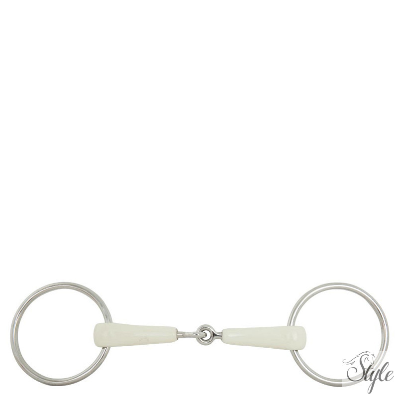 Ez az egyszertört zabla műanyag szájrésszel, fém maggal és rozsdamentes acél gyűrűkkel rendelkezik. A rugalmas műanyag és a kiváló minőségű rozsdamentes acél kombinációjának köszönhetően a zablák stabilak, mégis kivételesen puhák és gyengédek. A műanyag 90A keménységű és FDA által jóváhagyott. Ez azt jelenti, hogy az anyag oldószermentes, lágyítószermentes és nem mérgező. A zablák minden ló számára használhatók, és ideálisak fiatal lovak, érzékeny szájú lovak és olyan lovak számára, amelyek nehezen tolerálnak más anyagokat. A zabla nagyon gyengéd hatással van a szájra. A szájrész 18 mm vastag, a zablagyűrűk átmérője pedig 70 mm.