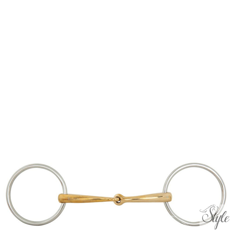 Ez a kiváló minőségű, egyszertört zabla tömör Cupriganból készült, rozsdamentes acél gyűrűkkel. A Cuprigan egy ötvözet, amely 89% rézből, 7% alumíniumból, 3% vasból és 1% cinkből áll. Az anyag oxidációs folyamata kellemes illatot és ízt kölcsönöz neki. Az anatómiai forma követi a ló szájának formáját, így gyengéd és egyenletes nyomáseloszlást biztosít. A Cuprigan alakjának és egyedi összetételének kombinációja serkenti a rágási folyamatot és a nyáltermelést, kellemes kapcsolatot teremtve az érzékeny ló szájával. A zabla gyengéd hatással van a szájra. A szájrész vastagsága 14 mm, a zablagyűrűk átmérője pedig 70 mm. A