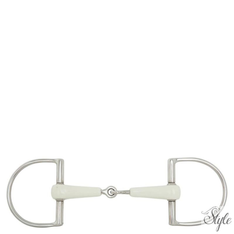 Ez az egyszertört Dee-Ring zabla szintetikus szájrésszel, fém maggal és rozsdamentes acél gyűrűkkel rendelkezik. A rugalmas szintetikus anyag és a kiváló minőségű rozsdamentes acél kombinációjának köszönhetően a zablák masszívak, mégis nagyon kíméletesek és gyengédek. A szintetikus anyag 90A keménységű és FDA által jóváhagyott. Ez azt jelenti, hogy az anyag nem mérgező, oldószerektől és lágyítóktól mentes. A zablák minden ló számára használhatók, és különösen alkalmasak fiatal lovak; érzékeny szájú lovak és olyan lovak számára, amelyek nehezen tolerálnak más anyagokat. A zabla enyhe nyomást gyakorol a szájra. Szájrés vastagsága 21 mm, gyűrűméret 70 mm.