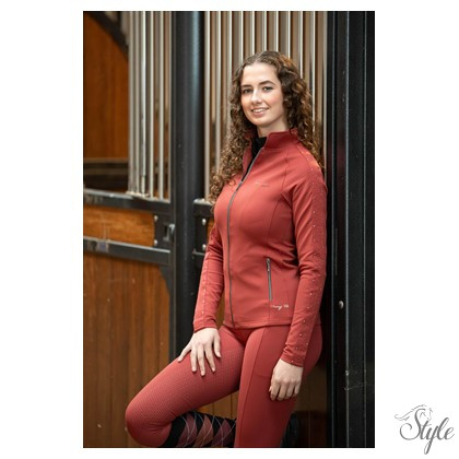 Kétirányú cipzárral, két cipzáras zsebbel, a mellkason lovas logóval dszítve.Kövekkel dszítve a pulóver ujjaikon. Kényelmes anyagból mely nagyon könnyen felveszi a lovas alakját és kényelmes mozgást biztosít a lovon.