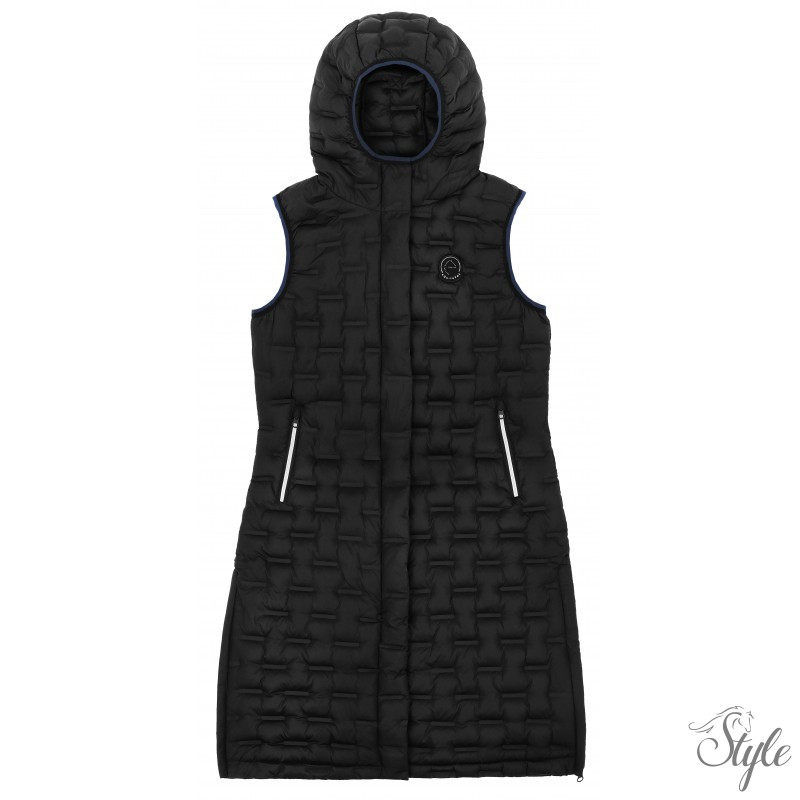 Az EQUITHÈME Navina hosszú steppelt mellény tökéletes választás minden lovasnak, aki kényelmes, stílusos és praktikus felsőruházatot keres a hűvösebb napokra. Könnyen kombinálható, időtálló darab a lovardában és a hétköznapokban is.