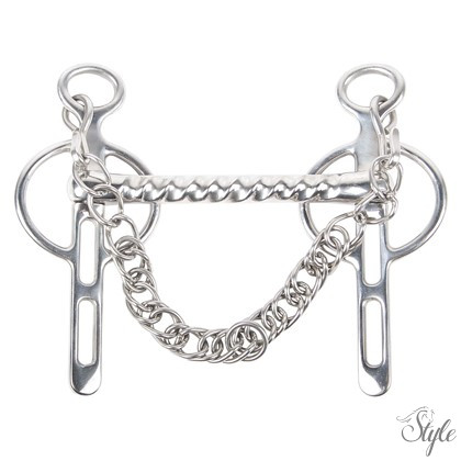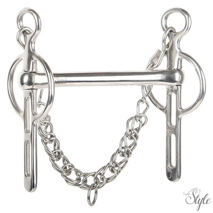 Ennek a modellnek megfordítható, rozsdamentes acélból készült, egyenes szája van. Az egyik oldalon sima, a másikon bordázott - élesebb felületet biztosítva a nehéz szájú lovaknál.