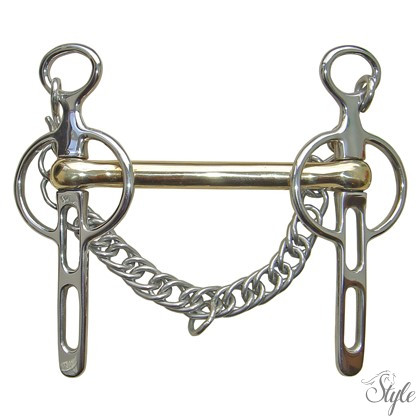 Ennek az SS modellnek megfordítható, egyenes, aranyozott sárgarézből készült szájrésze van. Az egyik oldalon sima, a másikon bordázott - élesebb nyomást biztosítva a nehéz szájú lovaknál.