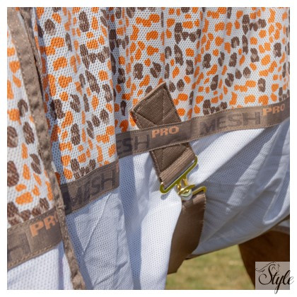 A Mesh-Pro Camo légytakaró ideális választás a melegebb hónapokra, amikor a rovarok zavarhatják a lovakat a karámban vagy a legelőn. Finom szövésű, légáteresztő hálós anyaga hatékony védelmet nyújt a legyek és egyéb rovarok ellen, miközben segít megőrizni a ló komfortérzetét még meleg időben is.
