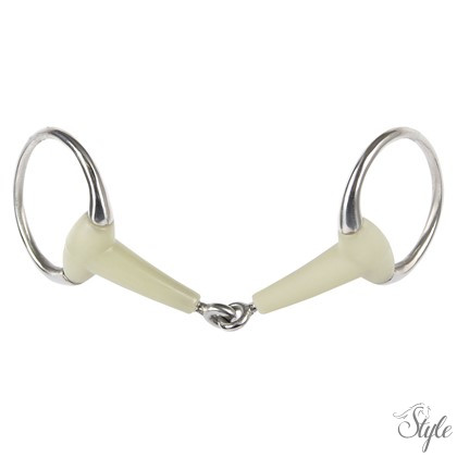Rozsdamentes acélból készült oliv karikákkal, és műanyag almás zájrésszel.Mely serkenti a nyáltermelést. Csökkenti a stresszt.