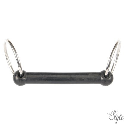 65 mm-es rozsdamentes acél karikákkal, 21 mm-es rugalmas gumi szájrész. Gumi zablák esetén fontos, hogy a ló jól rágjon és nyáladozzon, különben a zabla kényelmetlenné válik.