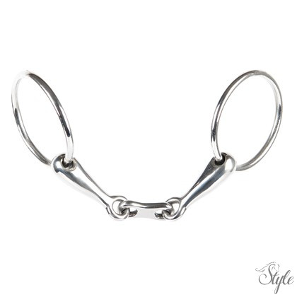 Rozsdamentes acél laza karikás zabla francia szájrésszel és lapos szemmel. 65 mm-es karikákkal.