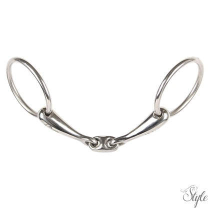 Rozsdamentes acél, francia o-link szájbetéttel, 14 mm-es szájrésszel, 55 mm-es karikákkal.