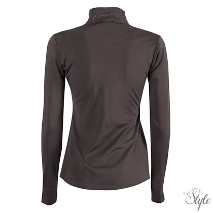 Hosszú ujjú ing, állógallérral és rövid cipzárral, a logójával a galléron és a bal ujjon.