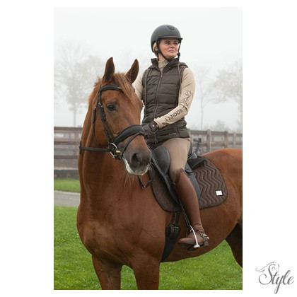 Letisztult elegáns színű női lovagló mellény. Kétirányú cipzárral és cipzáros zsebekkel.Kapucnival. Melegen tartja a lovast lovaglás közben és a földi munkák alkalmával.