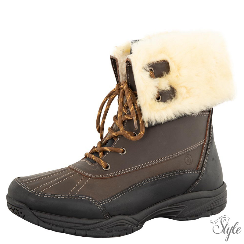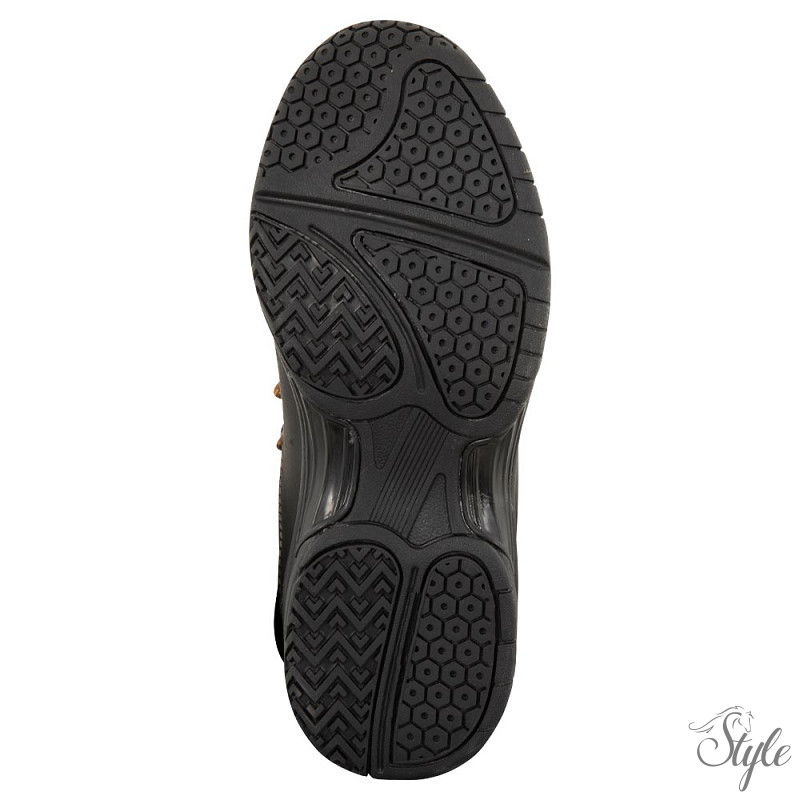 A BR Stable Shoes Roosky viaszolt Crazy Horse bőrből készült, amely egyedi, vintage dizájnt kölcsönöz a cipőnek. A cipő kellemesen meleg és vízálló. A kopásálló talp szintetikus gumiból készült. Az úgynevezett tiszta külső talp megakadályozza, hogy a homok a talpra tapadjon.