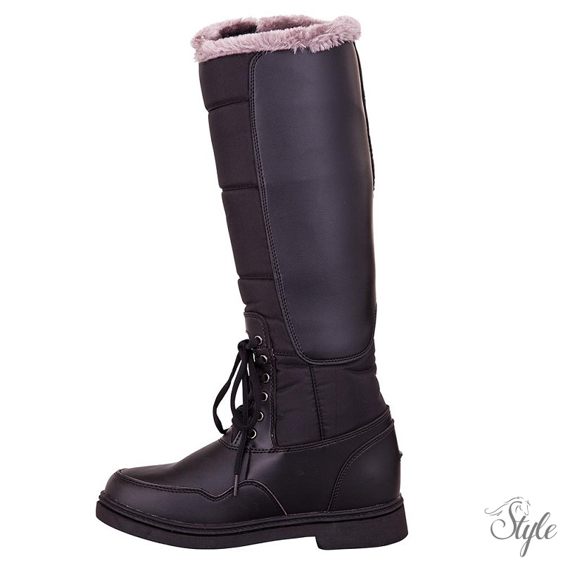 Ez a stílusos téli lovaglócsizma fűzőkkel és felül műszőrme szegéllyel rendelkezik. A talp mikroszálas poliuretánból, a szára pedig Cordura és poliuretán anyagból készült. Mind a talp, mind a szára vízlepergető. A szára tépőzáras a kényelmes illeszkedés érdekében. A csizma műszőrme béléssel és egy szigetelő réteggel rendelkezik az extra meleg érdekében. Ezenkívül a csizma gumitalppal és acélbetétes, formázott talpbetéttel van ellátva, amely kiváló stabilitást biztosít. Egy igazán nagyszerű és meleg csizma istállóban és környékén, valamint téli lovagláshoz.