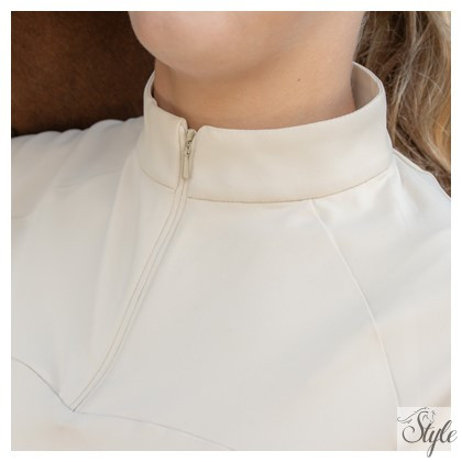 Ez az elegáns versenypóló finom krémszínűben, az EQS Ivory equitights-szal (26000036) kombinálva tökéletes alapot teremt egy stílusos versenyöltözethez. Az állógallér és a rövid, rejtett cipzár letisztult és sportos megjelenést kölcsönöz.